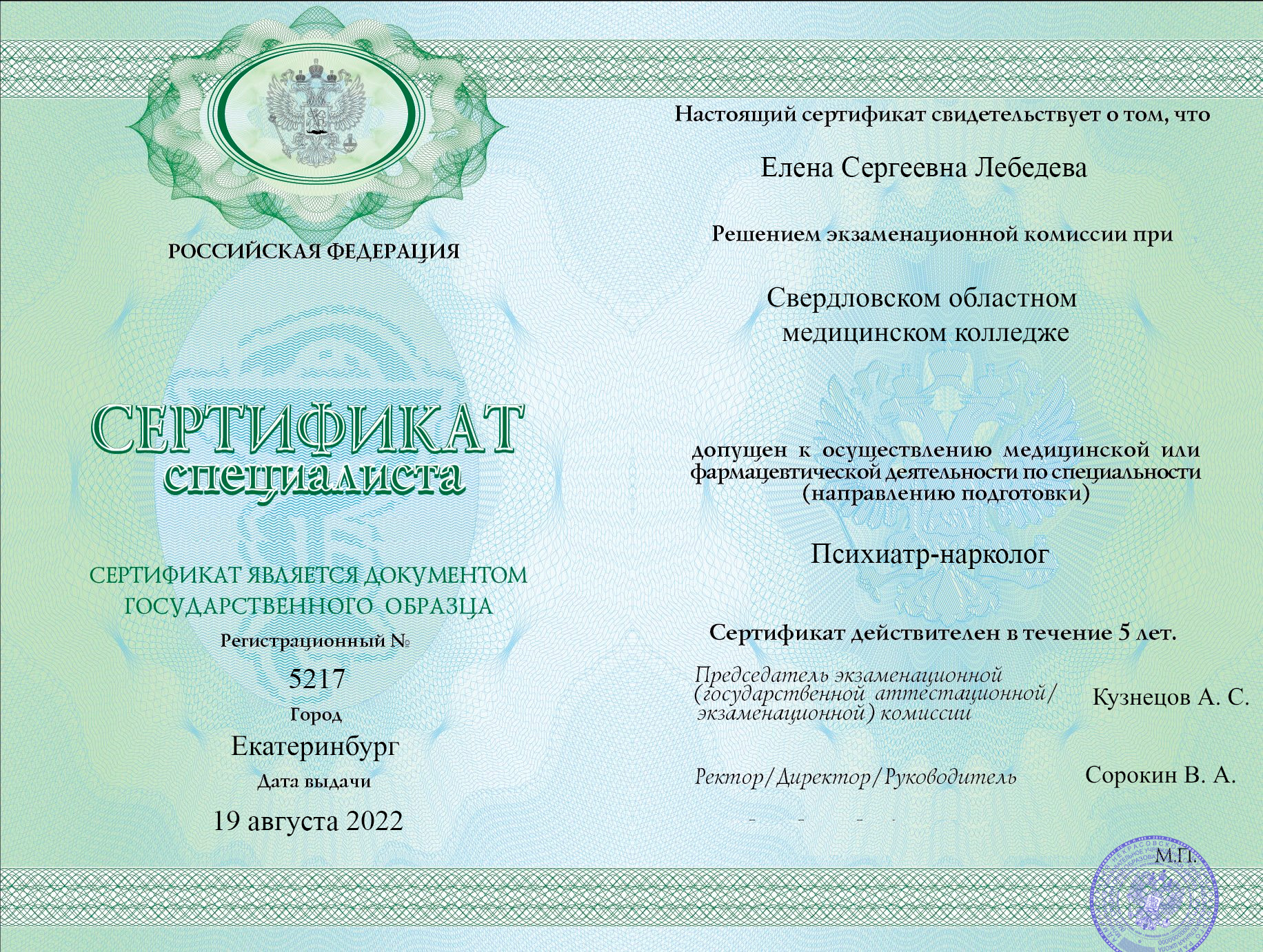 Елена Сергеевна Лебедева врач нарколог клиники доктора Стукаловой в Новоаннинском